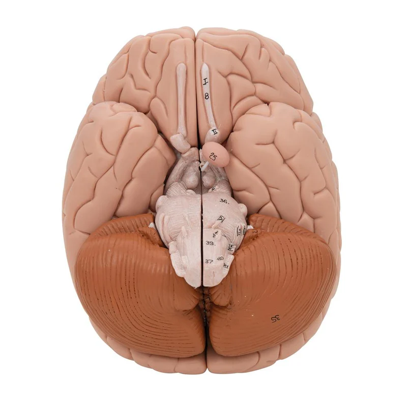 Mô hình rất chi tiết về bộ não con người được chia thành hai phần ở giữa. Cả hai nửa của bộ não này có thể được tháo rời thành: