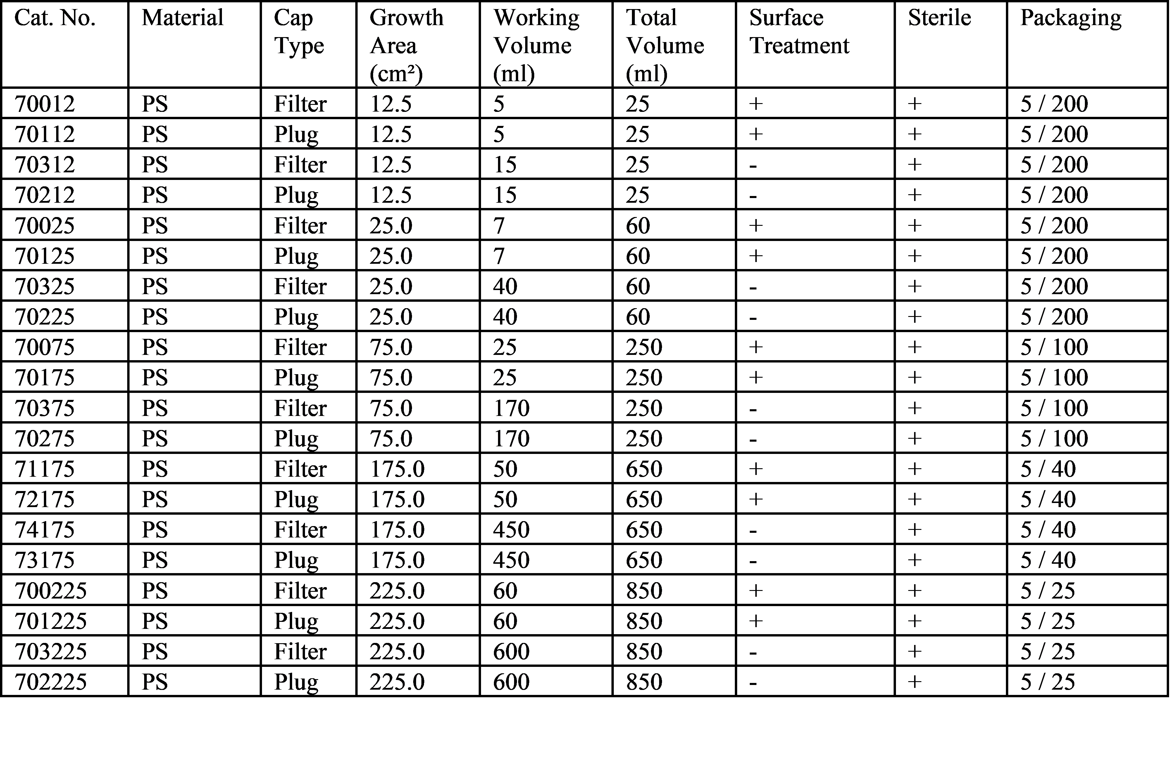 SPL Flasks are available in 12 types based on cell culture surface area and cap type.